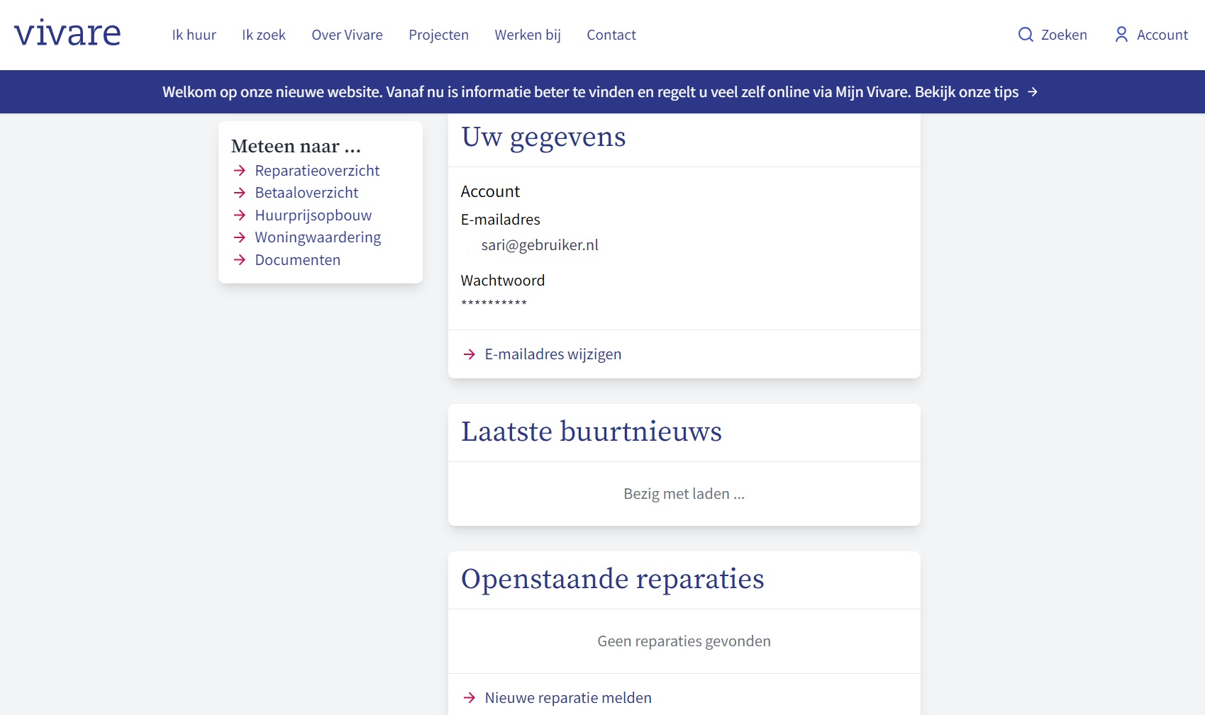 Als u bent ingelogd op Mijn Vivare vindt u uw eigen gegevens en allerlei andere informatie.